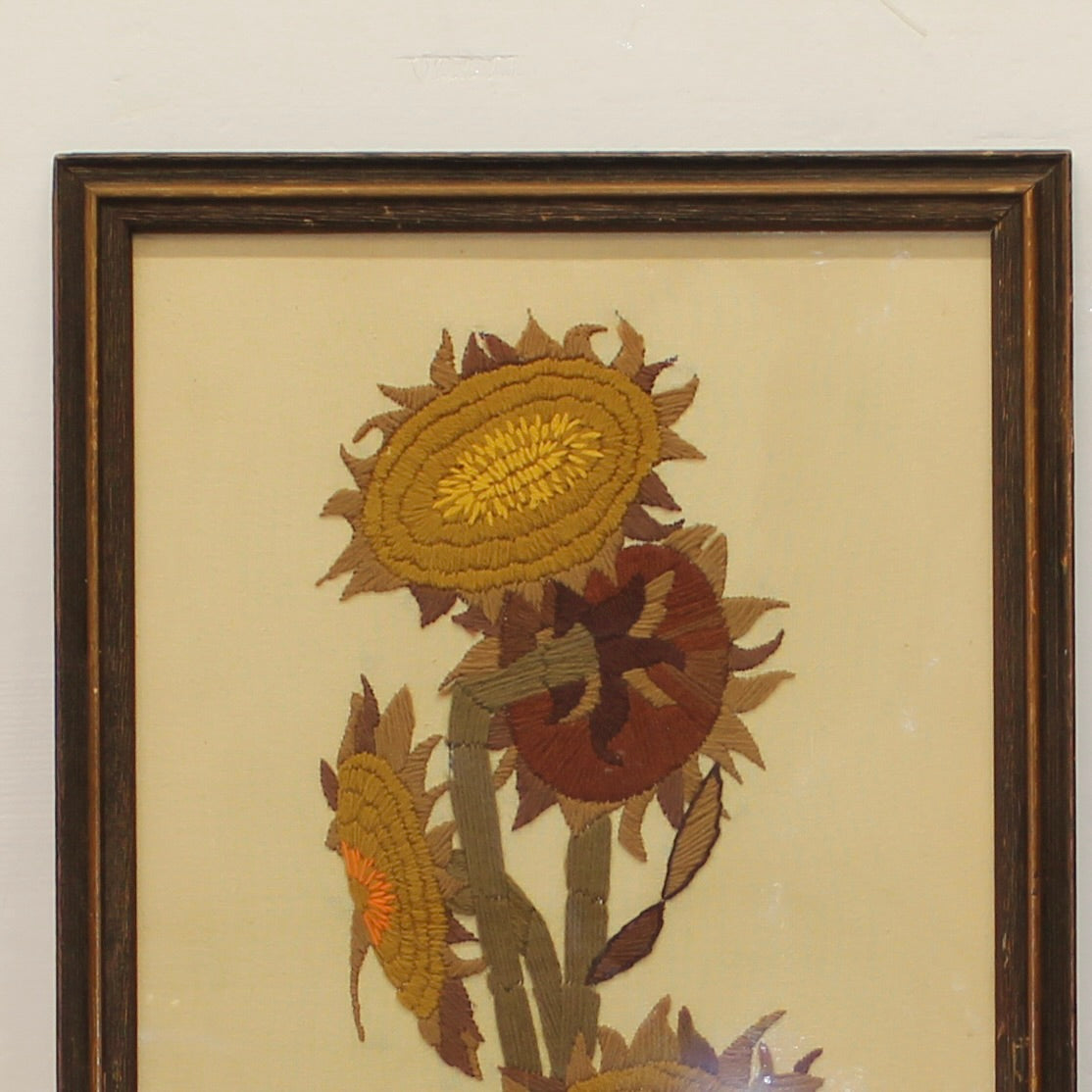 Large 1970s Framed Wall Art | Embroidered Sunflowers