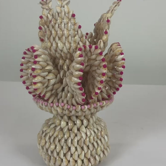 Vintage Folk Art Ruffled Cowrie Puka Sea Shell Vase | Trompe L’oeil