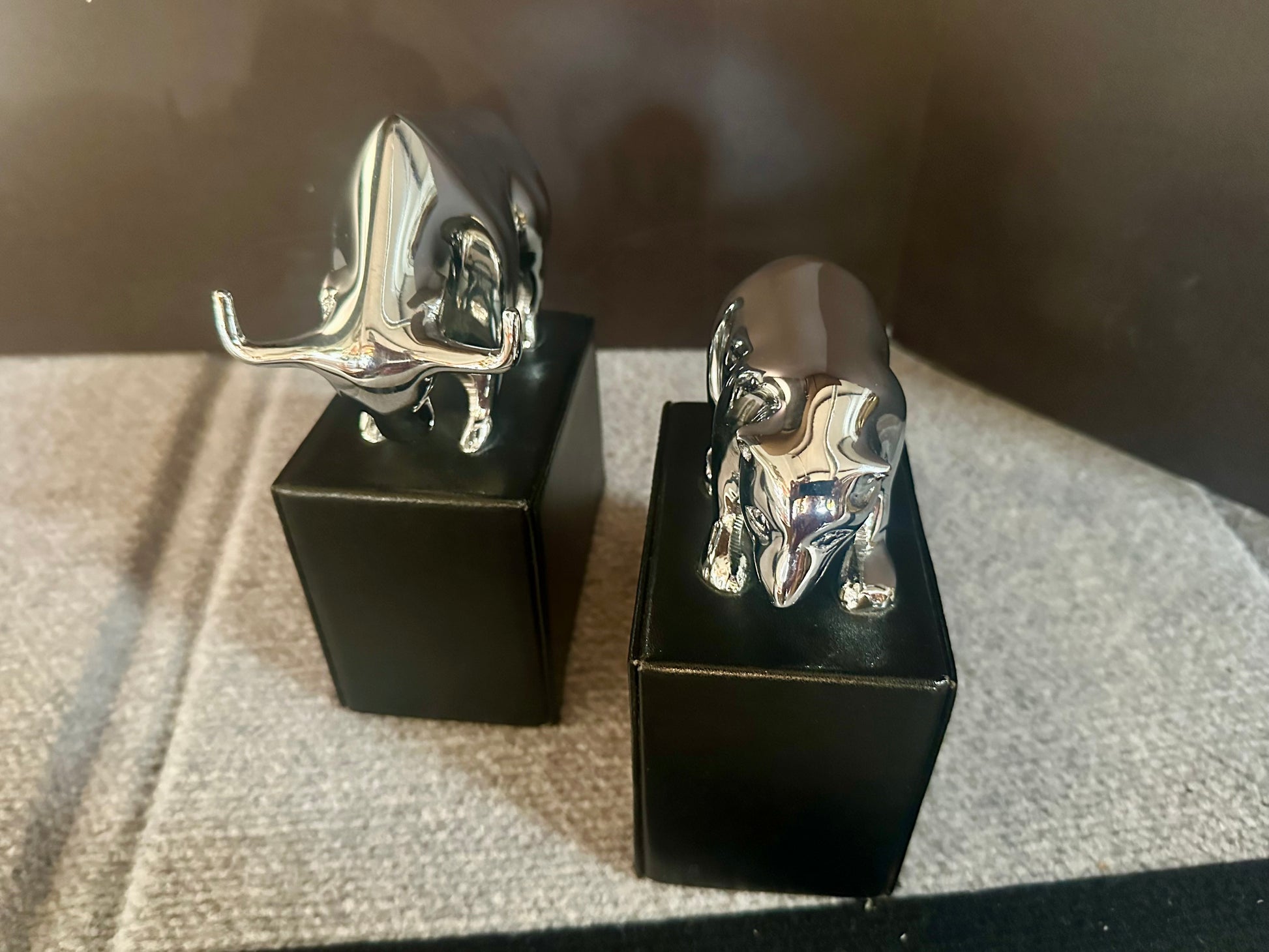 Polished Chrome Bull and Bear Bookends Paperweights Wall Street